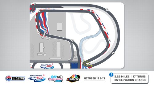 Drivers will also run pink window nets at the Roval in honor of Breast Cancer Awareness Month. The window nets will send a message of support for breast cancer survivors and their families, with the nets presented by the Erik Jones Foundation.