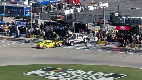 While racing for 12th, Blaney’s No. 12 Ford appeared to cut a left-front tire, sending his racecar into the outside wall in turn four.